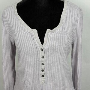 Anthropologie Postcard Ribbed Gray / Lavender Henley - Women’s L