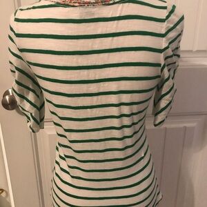Anthropologie Postmark 3/4 Ruffled Sleeve Striped Top with Floral Neck