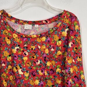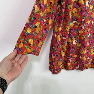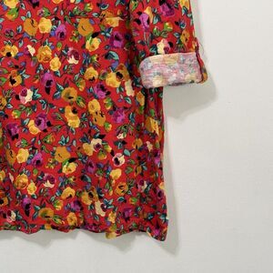 Anthropologie Postmark Banter Tee Top XL Red Floral Roll Tab Sleeve Pocket