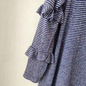 This Postmark Anthropologie cozy lightweight oversize sweatshirt features stripes, ruffle sleeves, a high-low hemline that is slightly longer in front than in back, and a longline modest length. Great for lounging, and evening out, or running errands!
