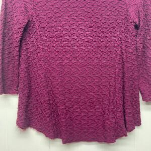 Anthropologie Postmark women's top in burgundy. Textured design. Round neck. 3/4 sleeves. Exposed zipper in back. Stretch. Flowy. In good used condition. No stains, tears or holes.