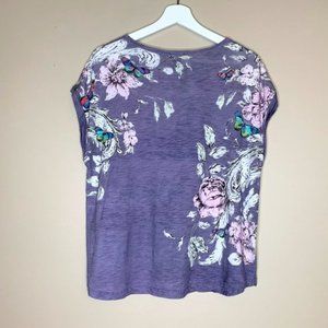 Anthropologie Postmark Butterfly & Flower Purple Tee - M