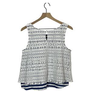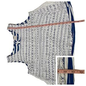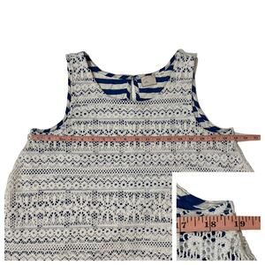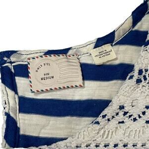 Anthropologie Postmark Crochet Lace Overlay Striped Swing Tank - White/Blue - M