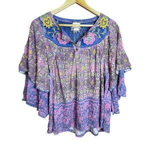 Anthropologie Postmark Floral Cross Stitched Embroidered Ruffle Blouse M