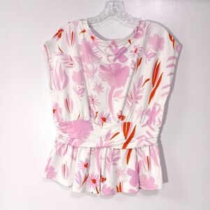 Anthropologie Postmark Floral Peplum Top in Pink Combo Size M