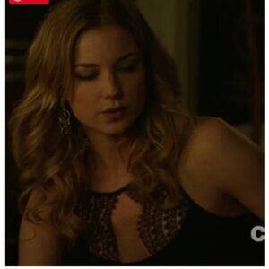 Anthropologie Postmark delicate lacy top. Black with navy lace overlay, spaghetti straps with keyhole neckline. This top was feature in two tv shows - worn on Penny in Happy Endings, and also Emily on Revenge. Very good preowned condition, Size: XS