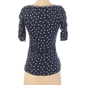 Anthropologie Postmark Letter A Navy Cotton Ruched Polka Dot Tee XS NWOT