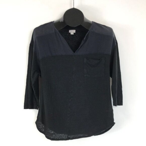 Anthropologie Postmark Linen Silk Pocket Tee Women's Size Small Black 9-H15 STCL