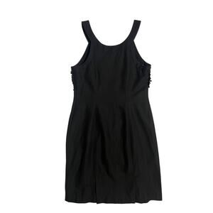 Anthropologie Postmark Mini Shift Dress Black Linen Floral Lace Tank Halter 10