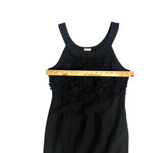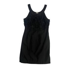 Anthropologie Postmark Women’s Mini Shift Dress Black Linen Blend Floral Overlay Lace Appliqué Tank Halter Size 10