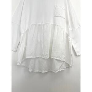 Anthropologie Postmark Mixed Media Cotton Linen Dolman Sleeve Peplum Hem Relaxed Cute Flowy Top - L