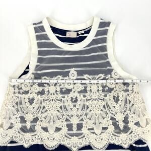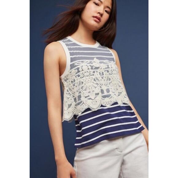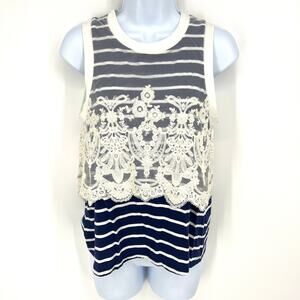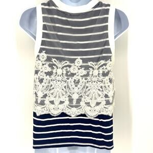 Anthropologie Postmark Natique Navy White Striped Lace Tank Top Size Small