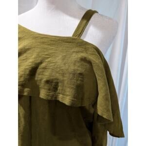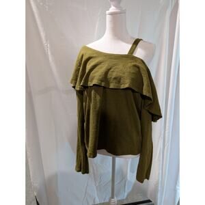 Anthropologie Postmark Olive Green Asymmetrical Shirt Top Ruffle Boho Size XL