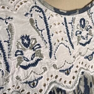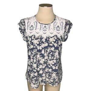 Feminine, easygoing, and effortlessly stylish — this Anthropologie Postmark “Penelope” Top features a delicate floral print with soft hues of navy and cream. The embroidered lace yoke and scalloped neckline add the perfect vintage-inspired touch.