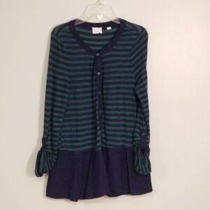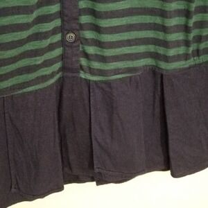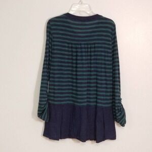 Anthropologie Postmark Pleated Ruffle Swing Roll Tab Tunic Top Blue Green Size M