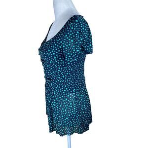Anthropologie Postmark Polka Dot Peplum Top Small Gray Green