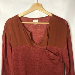 Anthropologie Postmark Rust Orange Linen & Silk Yoke Long Sleeve