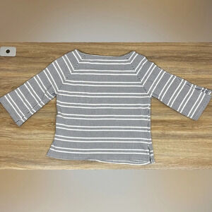 Anthropologie Postmark Square Neck Flare Sleeve Blue White Striped Top - Size L