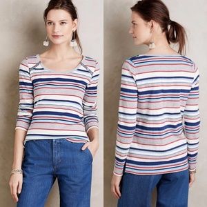 Anthropologie Postmark Stripe Joliette Long Sleeve Ribbed Tee Scoop Neck Large