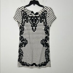 Anthropologie Postmark Striped Embroidered Filigree Tunic Dress