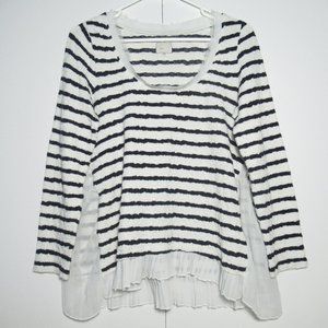 Classic Anthropologie black and white long sleeve striped top / light sweater... with a twist! Size women's M (medium).