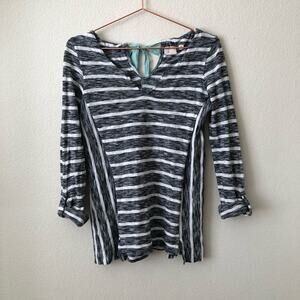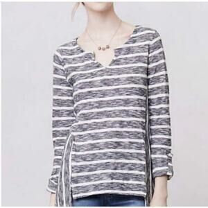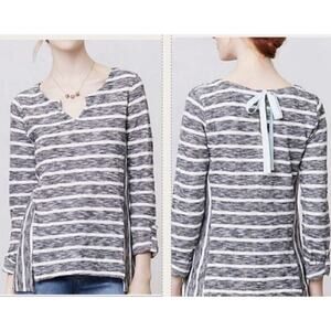 Anthropologie Postmark Striped Top, Size XS. First 3 photos are stock photos to show fit and detail only. Roll tab sleeves. Back keyhole with tie. Notched neckline. First 3 photos are stock photos to show fit and detail only.