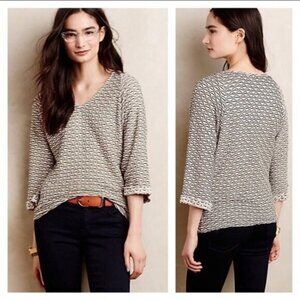 Anthropologie Postmark Textured Avana V Neck Top blouse 3/4 Sleeve Womens Size S