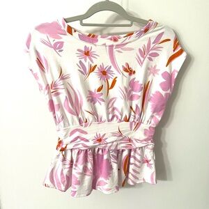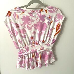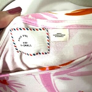 Anthropologie Postmark Top with a boat neck. Lilac Purple and orange details. Size is extra small. Wash and material information are photographed. Bin H