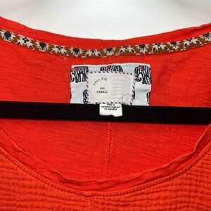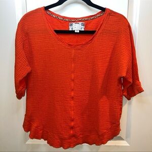 Anthropologie Postmark Top Orange Crinkle Gauze Front Raw Edge Boho