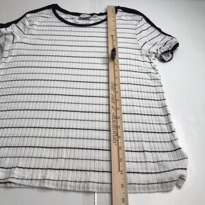 Anthropologie Postmark Top Womens Small Black White Stripe Ribbed Short Sleeve