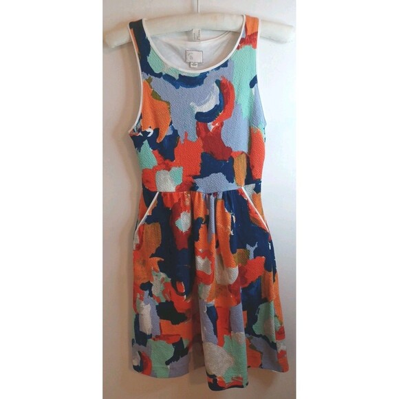 Anthropologie Postmark Watercolor Dress Womens 0 Fit And Flare Short Sleeveless