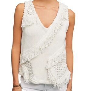 Anthropologie Postmark White Pacific Fringed Tank / Sweater