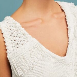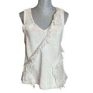 Anthropologie Postmark White Pacific Fringed Tank / Sweater Size Large