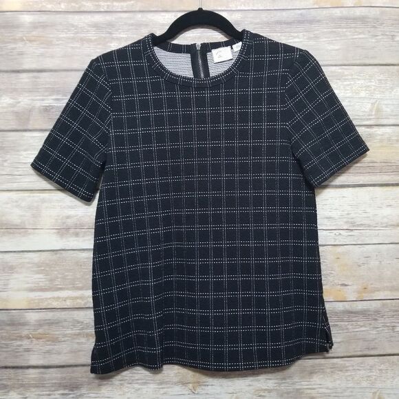 Anthropologie Postmark Windowpane Short Sleeve Top XS