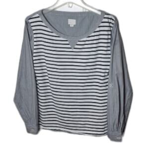 Anthropologie Postmark Women Medium Stripe Cotton Roll Tab Sleeve Top