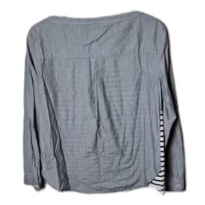 Anthropologie Postmark, Women Medium, Black & White -- Features: Round Neck, Roll Tab Sleeve, Conductor Stripes Darted/ Pleat Back, Lightweight Blouse Top