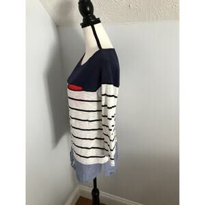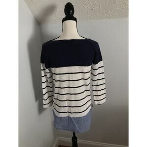 Anthropologie Postmark Women's Navy/White Striped Shirt with Pocket - Size MED