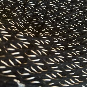 Nice preowned condition with no flaws to note. Soft stretchy textured fabric. Boxy fit. Rayon polyester spandex blend. Contrasting pattern on sleeve trim and waistband.