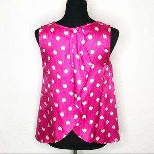 Anthropologie Postmark bright pink snail print top.  Pullover style with crew neckline.  Sleeveless.  Split overlay back with ruffles.  Pleated at neckline.  Size 4.  Excellent preowned conditon.  A couple of spots on the interior at neckline but does not show through when worn.  100% silk.