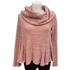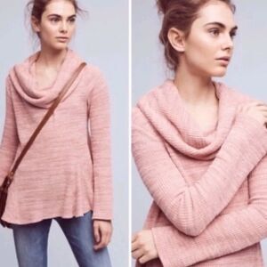 Anthropologie Postmark Heather Pink Maurisa Cowl Neck Peplum Waffle Sweater XS