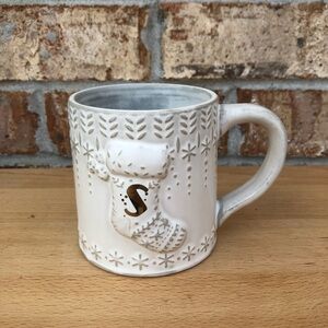 Anthropologie Pottery Stocking Reactive-Glazed Monogram Leather S Mug.