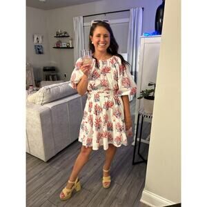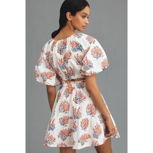 Anthropologie Priya Israni Short-Sleeve Printed Mini Women's Dress Summer Nautical Cutout L