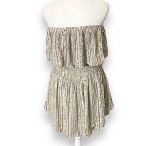 Anthropologie Promesa Size L Strapless Mini Dress Romper Ruching Cream Gray