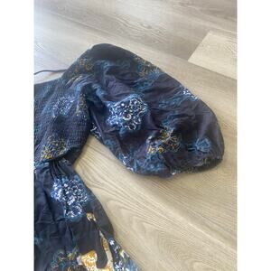Anthropologie Puff Sleeve Smocked Mini Dress With Tiger Graphics Square Neck 2XL