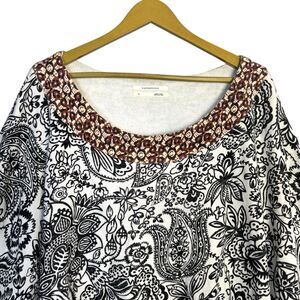 Anthropologie Pullover Top Women XL Samia Dolman Puff Sleeve French Terry Floral
