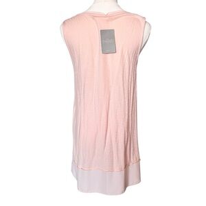 This stylish light peachy pink (tag says pink rose) sleeveless tunic top is perfect for any casual outing. Its soft fabric ensures comfort throughout the day. Feminine with sheer trim and chest pocket.