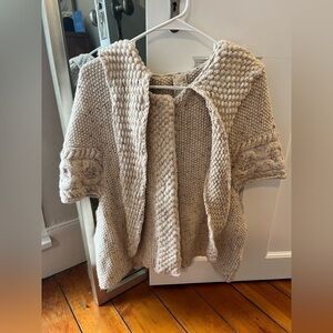 Anthropologie Purl Hooded Poncho Far Away From Close Handknit Small Wool blend