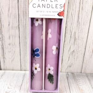 Anthropologie Purple Hand Painted Floral Butterfly Spring Plum Taper Candles