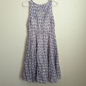 Elegant midi dress with a purple pattern. Sleeveless design. Perfect for any occasion.
