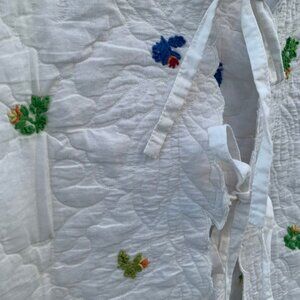 Anthropologie Embroidered Quilted tie-up floral vest, white, high detailed, cropped, high quality